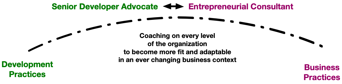 Teams need both technical and organizational capabilities to deliver purposeful outcomes. We coach in the flow of real work—not detached workshops—under the title that fits your context (Senior Developer Advocate, Technical Team Coach).