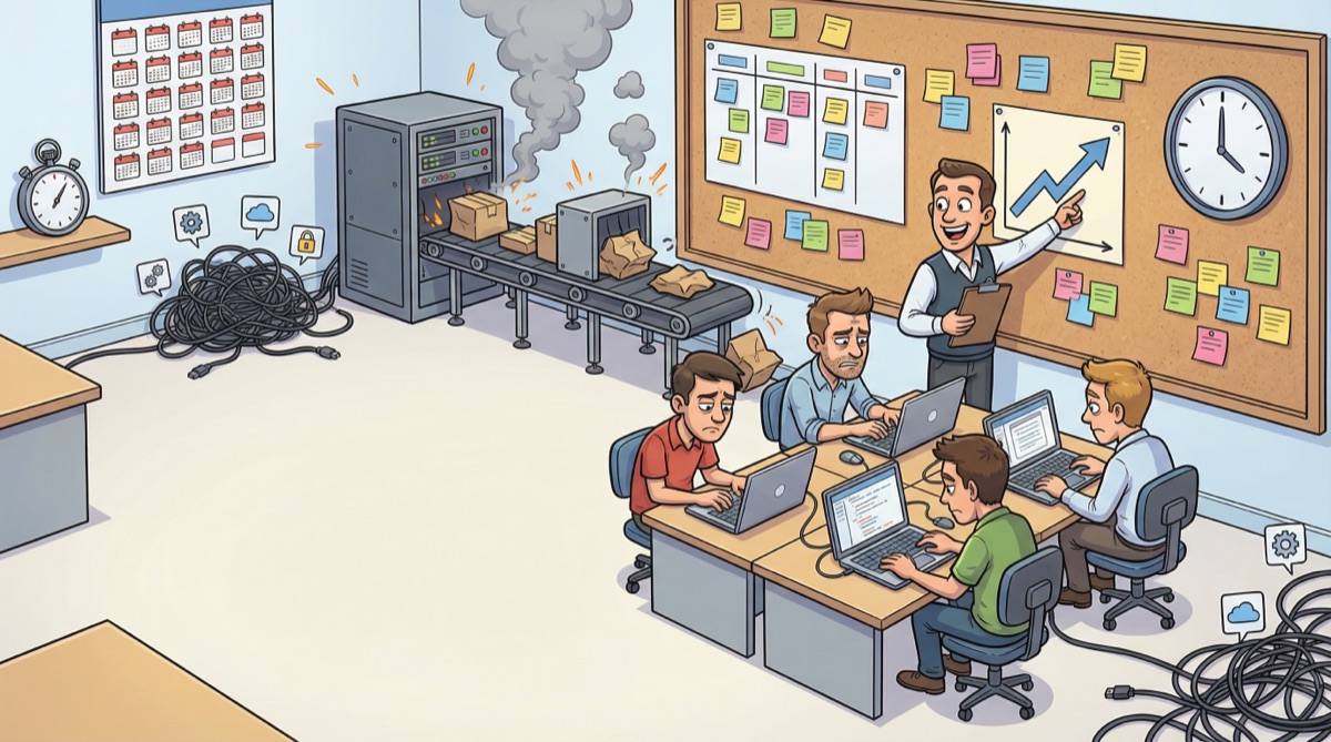 Bruno Cavalcanti arrives with his “Cavalcanti Framework for Operational Excellence.” What follows is a textbook case of process theater consuming a development team.